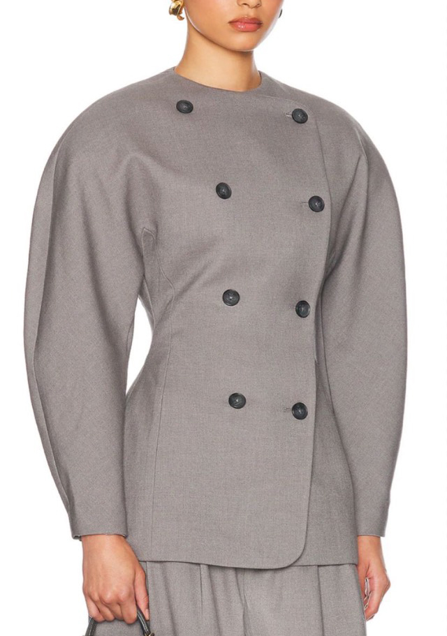 脇寄りに設定したパネルラインの後ろ身頃のシルエットが美しいマチ入りキモノスリーブのジャケットにトライしてみましょう。